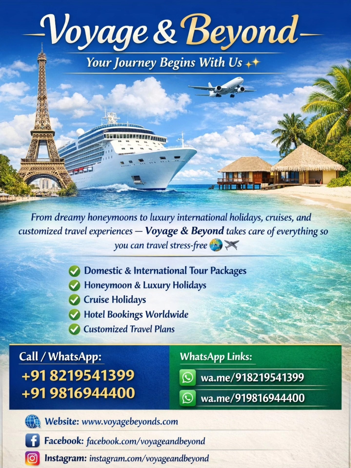 At Voyage & Beyond, we design travel experiences that go beyond sightseeing. Whether you’re seeking peaceful family holidays, romantic honeymoons, or adrenaline-filled adventure and trekking tours, every journey is planned with care and attention to detail.